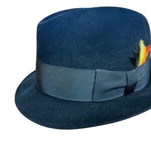 Stetson Mens Saxon Fur Felt Fedora Hat 3X Beaver Black 7 1/4 Yellow Red Feather