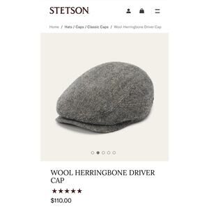 Stetson Men's sz L Wool Herringbone Driver Hat Paper Boy Peaky Blinders Grey
