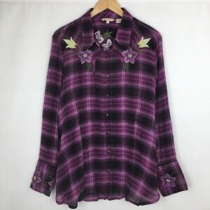Stetson Plaid Floral Embroidered Button Down Shirt Western Cowgirl Women’s Sz XL