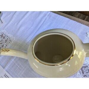This vintage Stetson STT1 American Beauty Laurel coffee/tea pot is a perfect addition to any collection. The oval shape and floral pattern on the cream, gold, and pink colored ceramic and porcelain material make it a beautiful piece for all occasions. With two compartments and five cups, it is a medium-sized pot that stands at 9.5 inches tall.