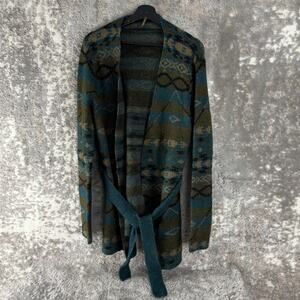 Stetson Size L Southwestern Aztec Tie Open Front Cardigan Sweater Long Sleeve