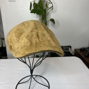Stetson Tan Corduroy Cap Newsboy Newsie Hat Driving Cap Plaid Lined