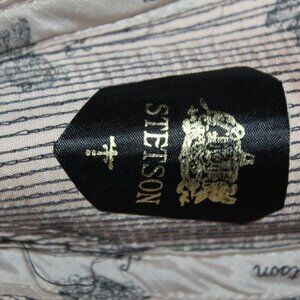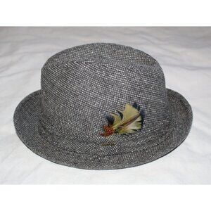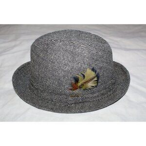 Stetson Tweed Fedora Wool Hat Size 7 1/4 black and white colorful feather