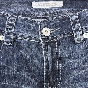 Comfortable and stylish Stetson bootcut jeans, featuring a medium wash and stretch fabric for ease of movement. Designed for a flattering and durable fit.