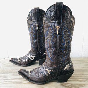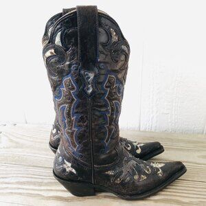 Stetson Womens Snake Skin Inlay Western Snip Toe Boots 6 B