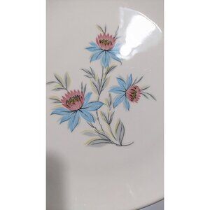 Steubenville Fairlane Oval Dinner Plate Pink Blue Floral Design Vintage Pottery