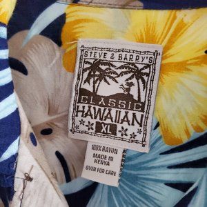 Steve & Barry's Classic Hawaiian Button up shirt. Pre-owned. Nice condition. No rips tears or stains. Measurements taken lying flat are approximately: AP to AP 23.5 inches. Shoulder to shoulder 20 inches Waist 23 inches. top to bottom 32 inches. Please zoom into a;; photos for a clear visual description and for measurements. Questions welcomed.