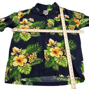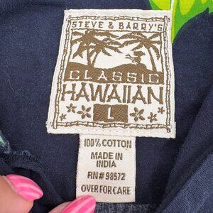 Steve & Barrys Classic Hawaiian Shirt Men's Large Black Yellow Floral Print