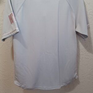 Stylish Steve & Barry’s New York NYC gray jersey with pink accents. Features “New York” embroidered across the front and “NYC” embroidered on the left sleeve. Made of 100% polyester for a comfortable, athletic fit.