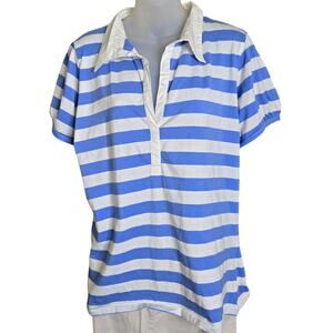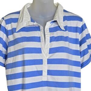 Steve & Barry's Womens Striped Polo Shirt XXL Blue White Collared Preppy Casual