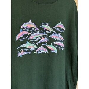Steve & Barrys XL Tee Embroidered Dolphins Graphic Crewneck Short Sleeve T Shirt