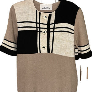 Steve Fabrikant Dress Large Wool Blend Knit Sheath Geometric Metallic Dress VTG