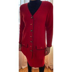 Neiman Marcus Skirt Suit Women's Small Red Wool Knit Formal Jacket & Skirt Set.