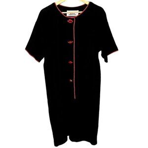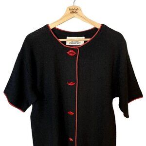 Steve Fabrikant Red Lips Funky Vintage Black Wool Short Sleeve Midi Dress SZ 10