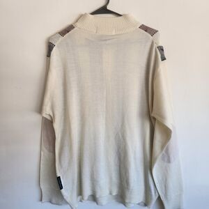 The sweater features a Plaid pattern, Tight-Knit fabric type, and a Mock Neck neckline. It also has a 1/4 Zip accent and a Regular fit size type. This sweater is perfect for men who want to look fashionable and feel comfortable. Dry Clean Only.