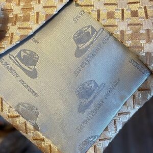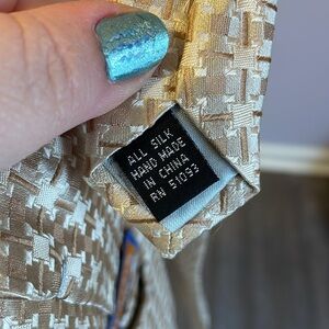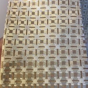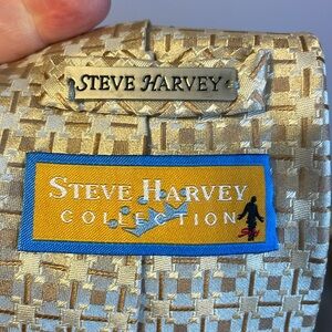 Steve Harvey Collection Gold Silver Tan Geometric Design Silk Handmade Necktie. Very good preowned condition. Gorgeous colors shine in certain lighting. Squares geometric patterns.