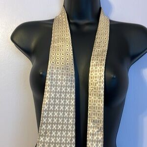 Steve Harvey Collection Gold Silver Tan Geometric Design Silk Handmade Necktie