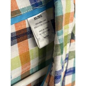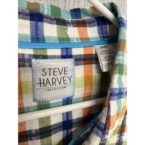 Steve Harvey Collection XL Plaid Linen Short Sleeve Preppy Summer Oversized