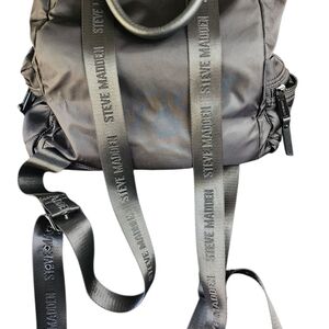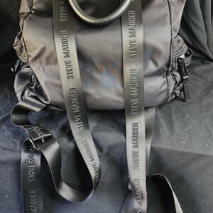 Sleek and versatile black nylon backpack, perfect for everyday use. Durable and stylish with adjustable straps for comfort. excellent condition absolutely lovely!