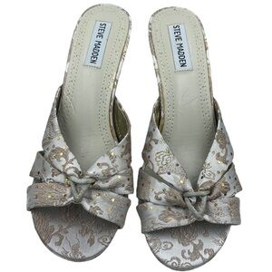 - STEVE MADDEN PKiss Champagne Sparkling Brocade Slide Leather Sandals Size 8.5