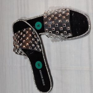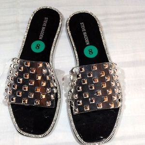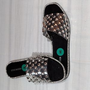 Steve MADDEN SZ 8 SLIDES FLATS SLIP ON DRESS SHOES SILVER GLITTER ACCENTS NWT
