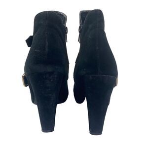 Steve Madden black suede platform booties with leather straps and gold buckles. These are in very good condition. They have an inside zipper .