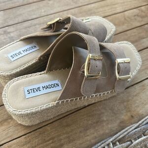 Steve Madden 2 Buckle Tan Leather Sandals 6.6