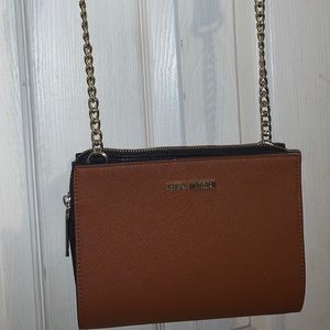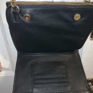 Brown , gold , card holder back and front of the bag , pocket inside , cross body , bag , black