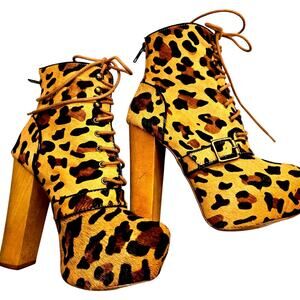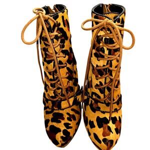 Steve Madden 6 Women's Ankle Boots Cheeta Print Fur 5 Inch Heels Shoes