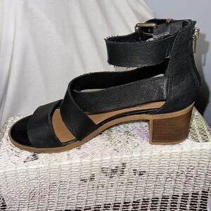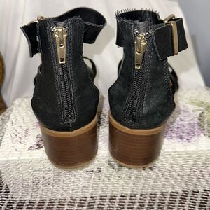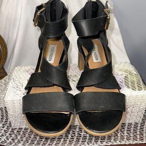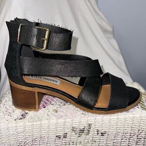 Steve Madden 7M Black Genuine Leather Criss Cross Block Heel Back Zip Sandals