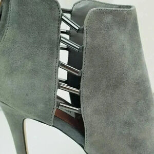 Steve Madden 8.5M Lola Gray Suede Back Zip Open Toe Vented Side Ankle Boots Heel