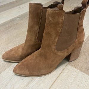 Pre-loved Steve Madden Addy Cognac Suede Bootie - Size 11. Worn only a handful of times. Great condition. This bootie was a collaboration with Jen Reed and Steve Madden. Cognac is the IT color for fall!