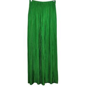 Steve Madden Addy Green Plissé Wide Leg Pants M Satin Pleated Lounge Chic