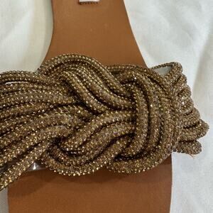 Steve Madden Adore Rhinestone Knot Front Slide Sandal Metallic Braided Size 8