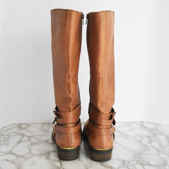 Steve Madden Albany Cognac Leather Belted Riding Boots Size 8
