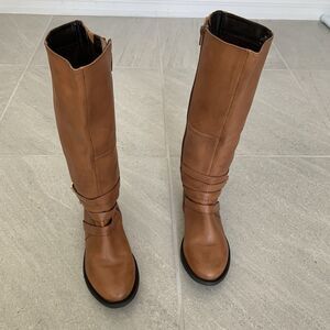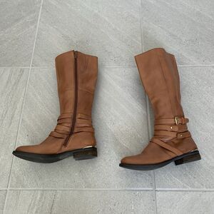 Steve Madden Albany Cognac Leather Belted Riding Boots Sz 8.5