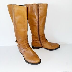 Steve Madden Albany Cognac Leather Belted Riding Boots 8.5