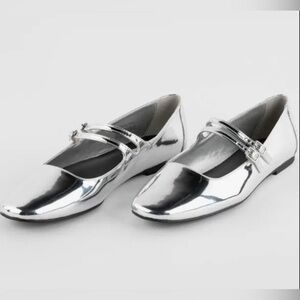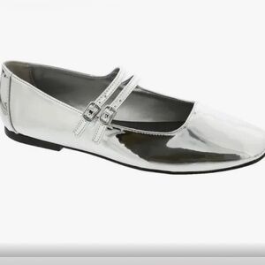Steve Madden Alisah Silver metallic mirrored reflective mary jane double strap flats size 11 brand new