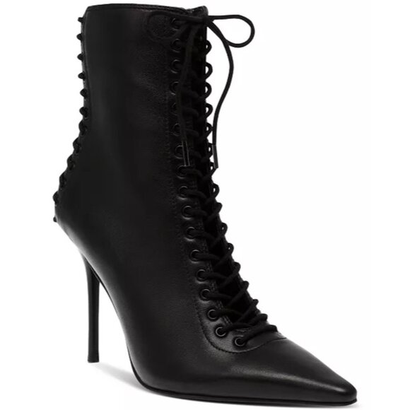 Steve Madden Allnight Lace-Up Stiletto Dress black leather Booties size 8.5