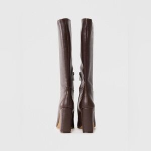Step out in style with these elegant brown leather knee-high boots. Perfect for any occasion, these boots offer both comfort and sophistication.