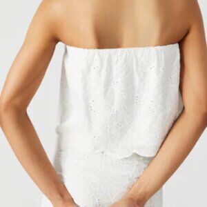 Steve Madden Amalia Scallop Edge Strapless Eyelet Baby Doll Top