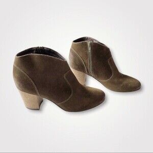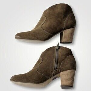 Steve Madden Ankle Booties Boots Olive Green Genuine Suede Stacked Heel Harrlee