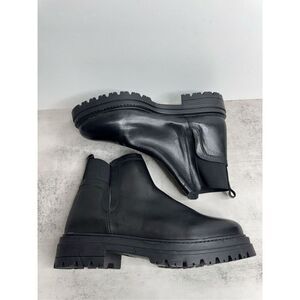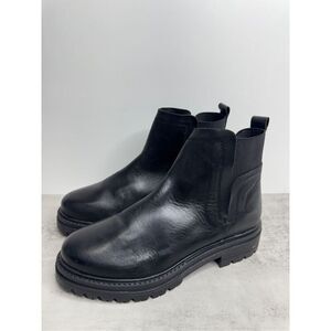 Steve Madden Ankle Boots Size 8 Black Leather Pull On Block Heel Booties
