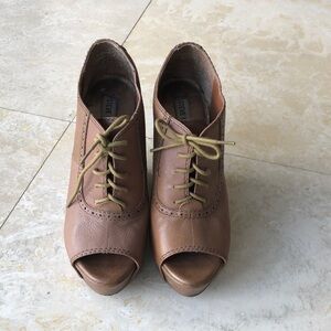 Style: Annton Leather Peep-toe Lace Up Wedges