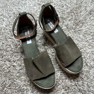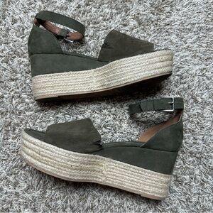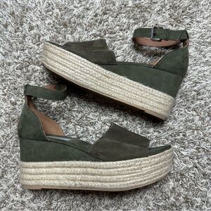Steve Madden Apolo Espadrille Wedge Sandal Green Suede, Size 9M
