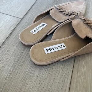Steve Madden 'Approve' Women's 7.5 Suede Taupe Leather Chain Mule Slide