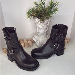 Steve Madden Archie Black Combat Moto Boots with Buckle Hardware.Sz 7