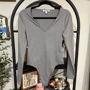 Steve Madden Asymmetrical Gray Long Sleeve Bodysuit size small
