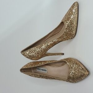 Steve Madden Atlantic Gold Glitter Stiletto Heels sz 8.5