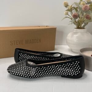 Steve Madden Auden Mesh Textile Flats with Rhinestones Black Women 7.5 NWB